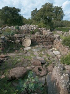 In the territory of Genoni, also on the edge, are the remains of the village of Bruncu Suergiu where a large number of furnishings and artifacts for the processing of grain and fruit have been found. It could have been an outpost against vandalism. In the Rotonda de Sa Corona Arrubia, the offering of coins from the 3rd century B.C. to the 6th-7th century A.C. demonstrates the continuity of worship. The presence in several Roman sites of the Giara of a large number of mills and presses of basalt for wheat and fruits (olive, olive and mastic) suggests small industries.