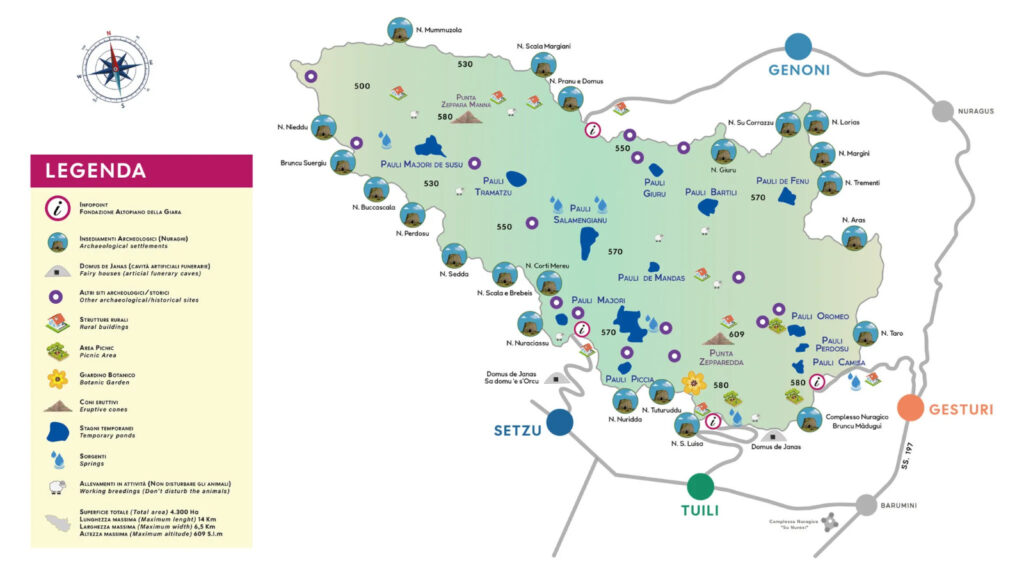 Nel 1885, il Consiglio Comunale di Gesturi delibera di erigere un muro a secco che tuttora divide il territorio di Gesturi da quello degli altri paesi, al fine di evitare l’abuso e lo sfruttamento della sua parte di altopiano. Il territorio del Comune di Gesturi è interamente di proprietà pubblica ed è soggetto a usi civici di legnatico e pascolo regolamentati. I restanti territori sono di proprietà comunale o privata.