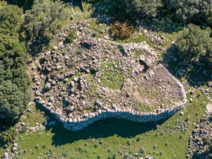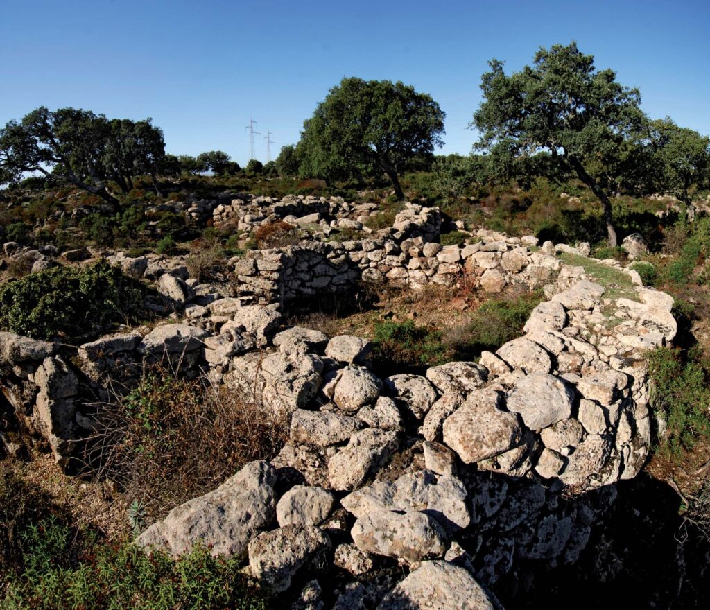 The settlement consists of a dozen separate nuclei and some isolated buildings. The first group consists of a set of fourteen huts, closely linked by common walls or short curtains. The entrance of the agglomerate leads into a paved courtyard. The cooking of food had to take place in individual rooms and the huts are similar, for architectural conformation and materials found. The settlement is dated only to the Bronze Finale.