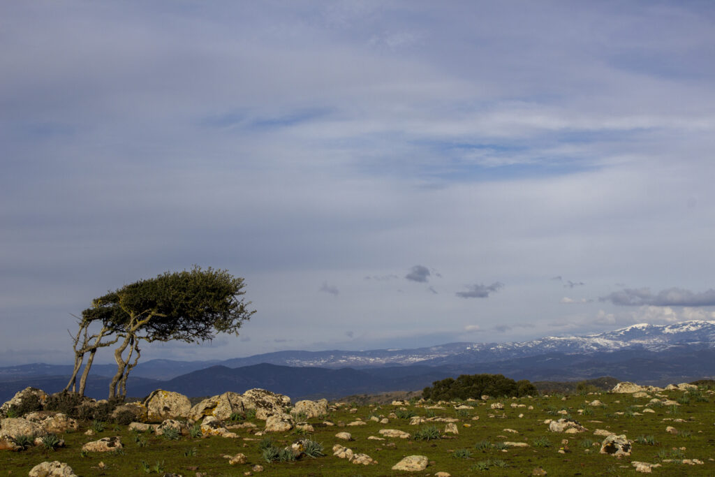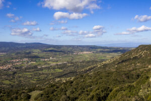The highest parts of the slopes present a certain uniformity: they consist of very steep cliffs of basaltic rocks that circumscribe the Giara plateau, forming the so-called crown. Rainwater breaks up and deeply incises the rock, shaping small waterfalls; when the water runs out, the incisions are used as access routes to the plateau (scálas). Vertical cracks in the basaltic substrate swallow part of the rainwater, which then gushes out at the foot of the cornice in numerous springs (mitzas). The vegetation consists of holm oaks, tall shrubs, mosses and lichens.
