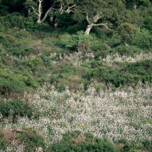 The garrigues are generally located in flat areas and form a discontinuous landscape where scrub shrubs, which cover the rocky spines, alternate with grassy meadows settled in the small depressions of the substrate. Their most representative appearance is given by the cystetes, especially Montpellier’s cist and female cist, accompanied by thin hylatra and several species of hypocyst. There are also numerous shrubs (strawberry, mastic, hawthorn) and lianose (shrubbery and tamaro).